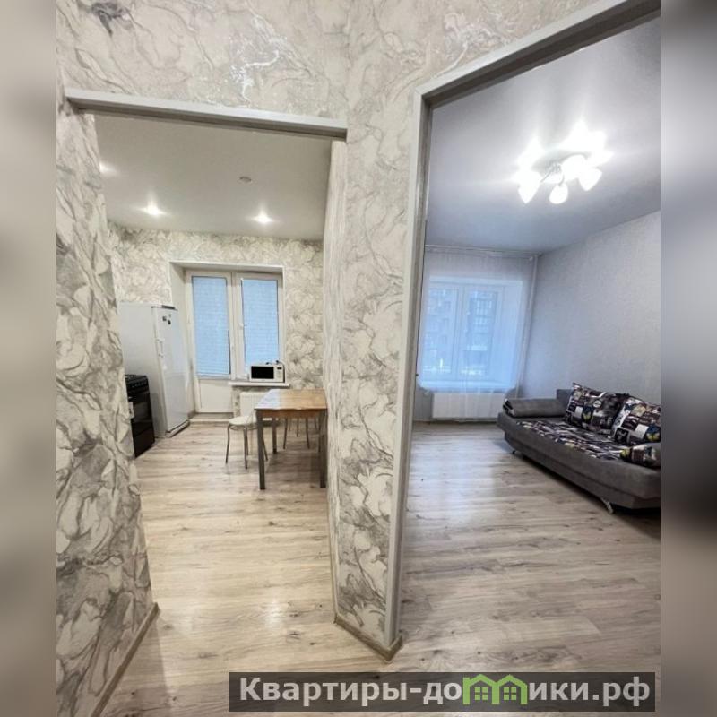 Сдается удобная 1-комнатная квартира, оснащённая свежим и стильным интерьером. Оформление выполнено преимущественно в мягких оттенках, благодаря чему помещение кажется просторным и наполненным светом. Спальная зона оснащена широкой удобной кроватью с ортопедическим матрасом и множеством подушек, гарантирующих полноценный отдых после трудового дня. У кровати стоит компактная тумба с ночником, создающим приятный полумрак вечером.