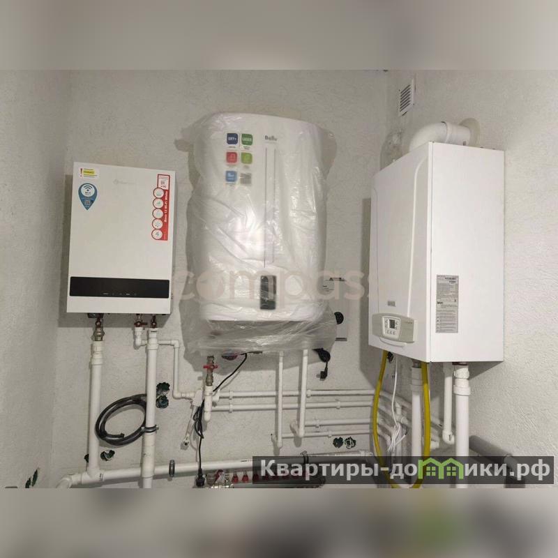 Все коммуникации заведены в дом: скважина 34м, бойлер 80 л, канализация - переливной септик две колонны по 6 м. Электричество 15 кВт 380В заведено и выполнена разводка, ввод кабеля подземный. Газовый котел 2х-контурный BAXI (резервный электрокотёл Термекс)