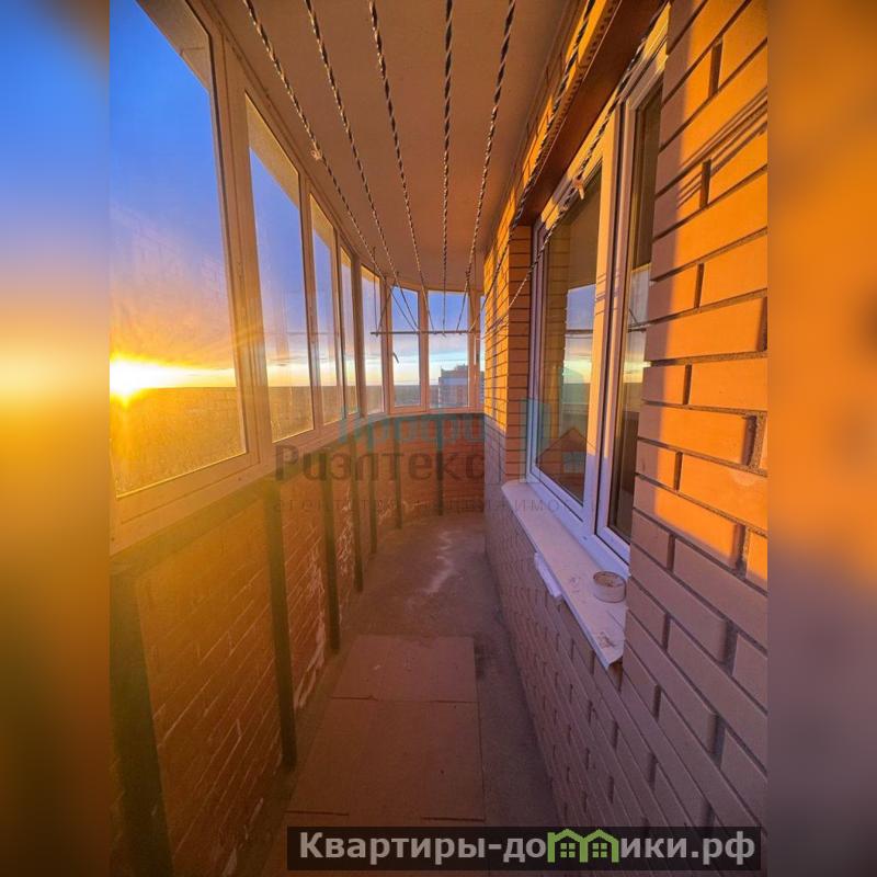 Широкий застекленный балкон с выходом из кухни.