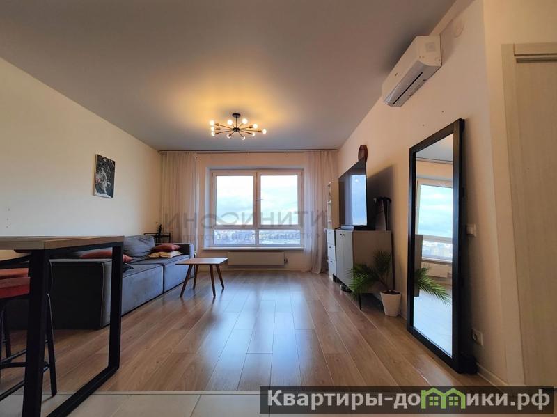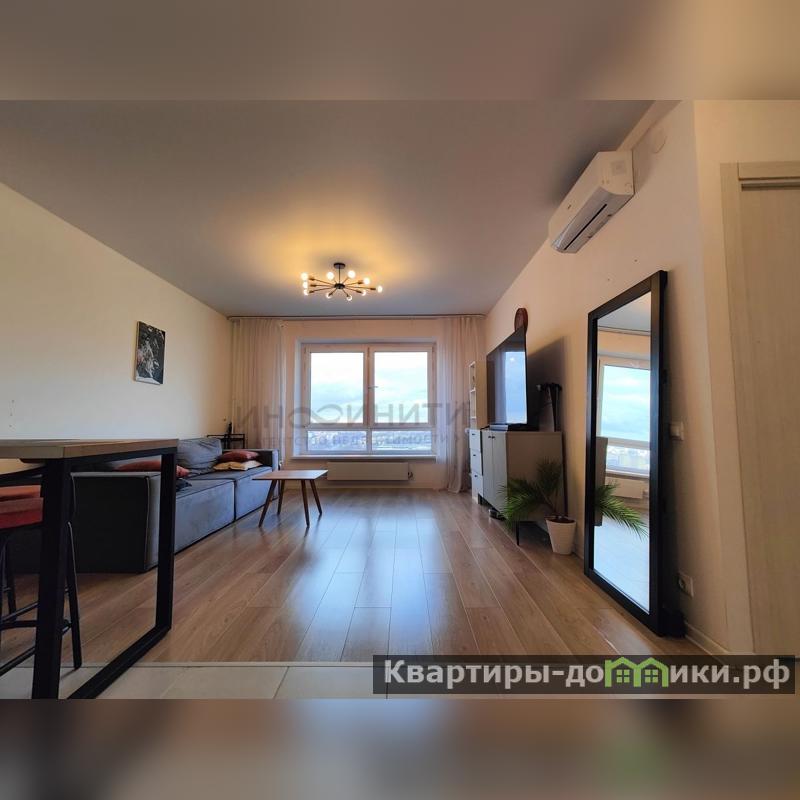 Продается уютная 1-комнатная квартира (по факту Евро Двушка) на 21 этаже 25 этажного нового панельного дома 2021г. постройки. Общая площадь 40,9 кв.м., комната 10.7 кв.м., кухня-гостинная - 21.2 кв.м., просторный холл - 5,4 кв.м., санузел - 4 кв.м. Состояние заезжай и живи! Квартира с ремонтом от застройщика, оснащена необходимой бытовой техникой и меблирована. Чистый и ухоженный подъезд под видеонаблюдением, четыре грузовых лифта.