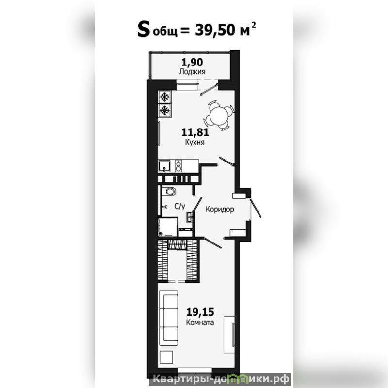 Площадь 39,5 м² • 15/18 этаж<br />