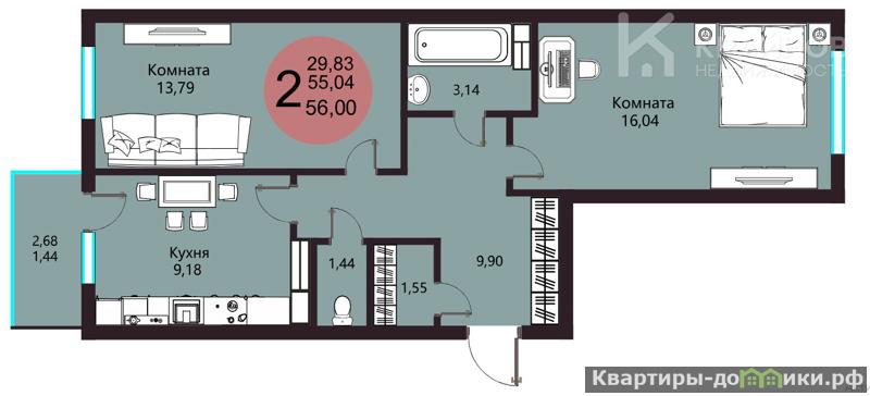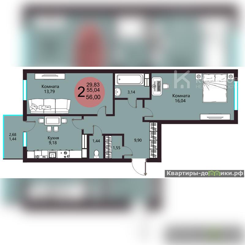 Двухкомнатная квартира 56,48 кв. м., в предчистовой отделке, удачно расположенная в благоустроенном ЖK Авиапарк, нa комфортном 9 этаже, пo aдpecу: Острогожская 156