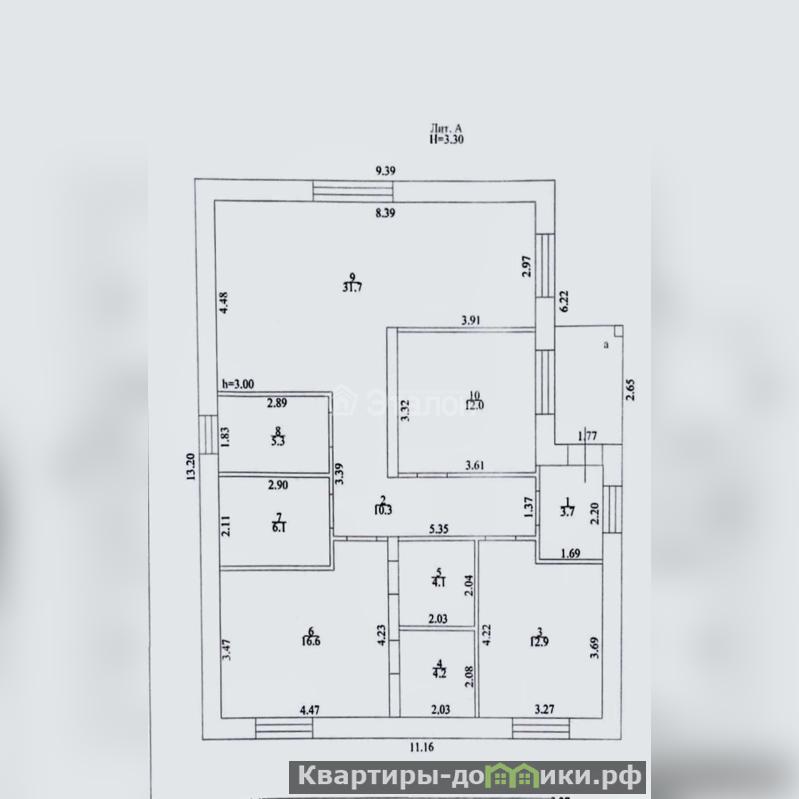 Высота потолков H=3м
