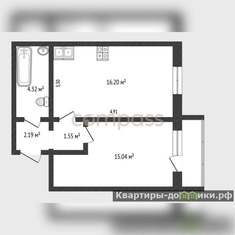 Функциональная планировка 1+ с кухней-гостиной и большой лоджией создаёт комфортное и уютное пространство для жизни.
