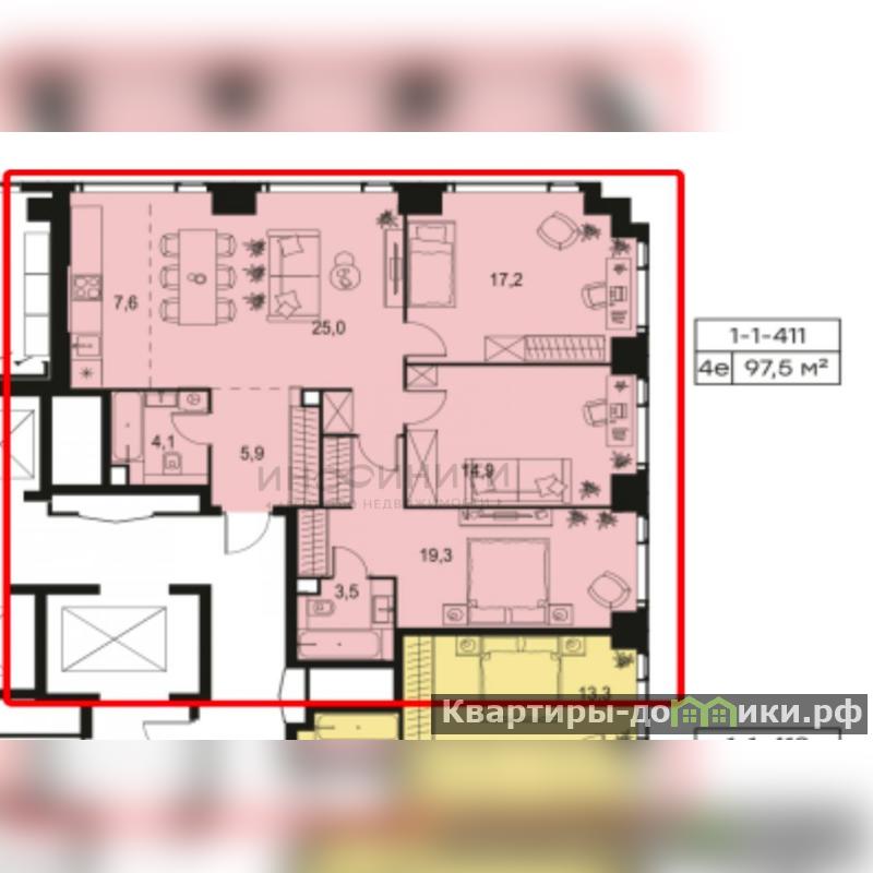 - Площадь 97,5 квадратных метров;