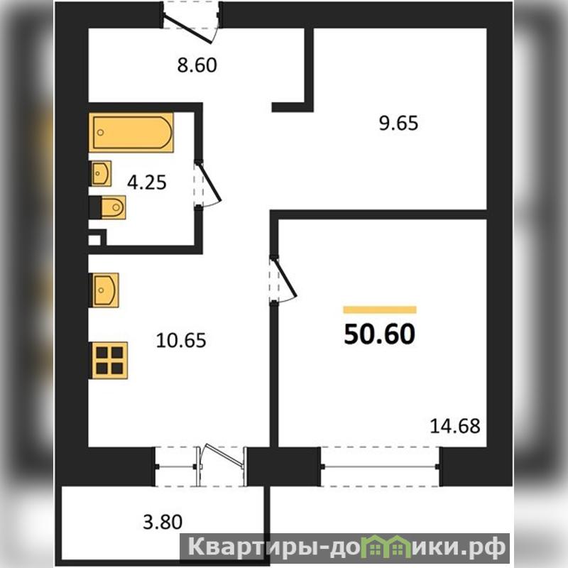 Общая площадь: 50.6 кв.м. Жилая площадь: 14,68 кв.м. Площадь кухни: 10,65 кв.м. Высота потолков составляет 2,68 метра, что добавляет пространству воздуха и света.
