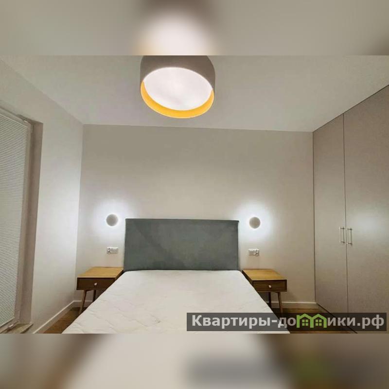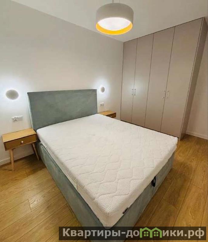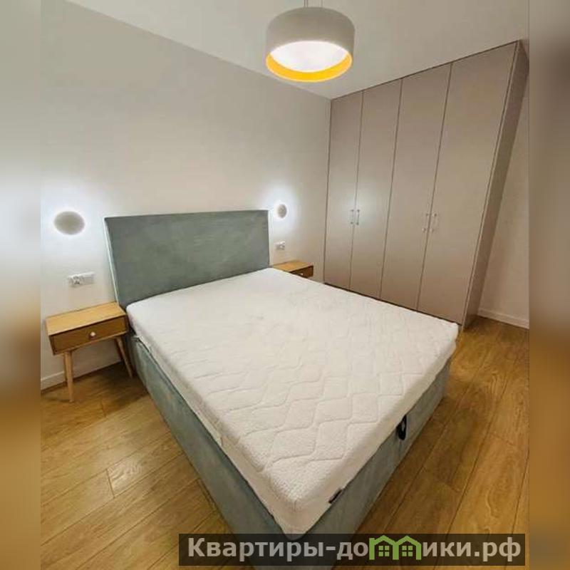Спальня имеет каркасную кровать на двух человек с ортопедическим матрасом на независимых пружинах. В углу шкаф без ручек, открывающийся по принципу пуш ту оупен.