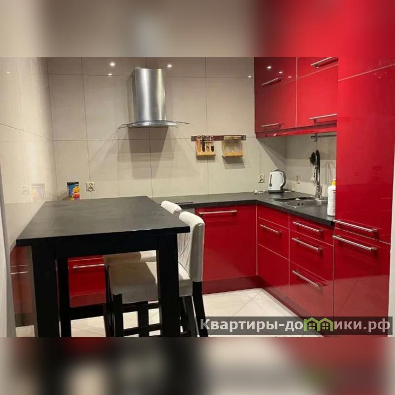 Кухня Г-образная, духовка, электрическая плита, вытяжка, место для приема пищи, все имеется.