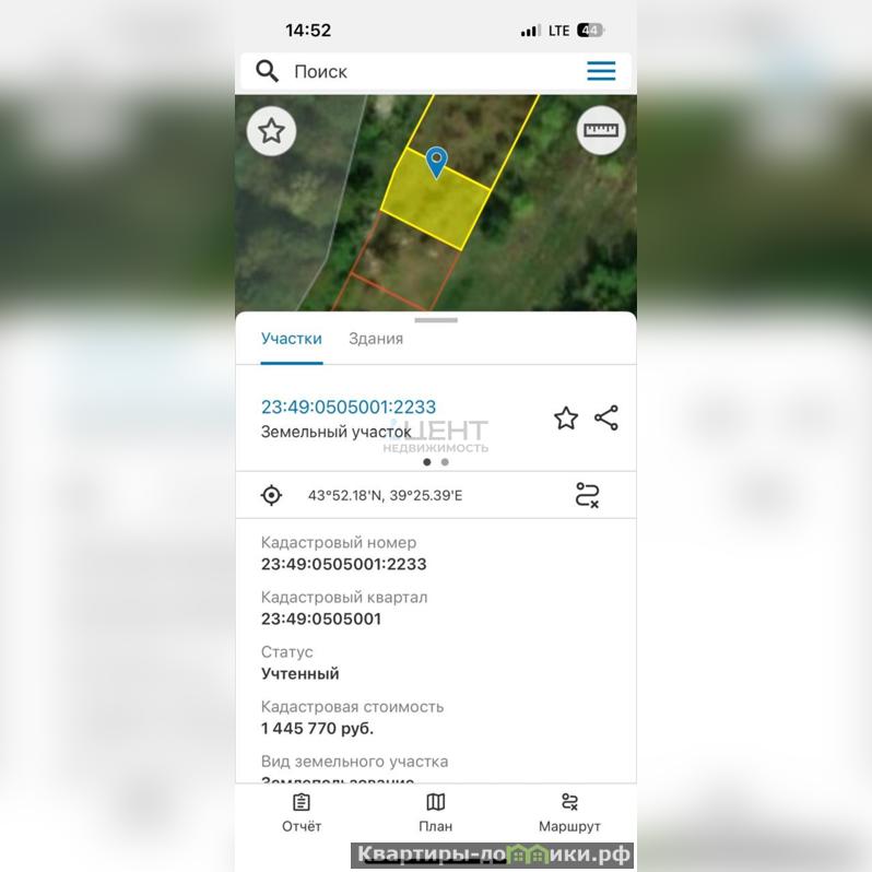 Продается абсолютно ровный участок в пос. Каткова щель с прекрасным видом. ИЖС, есть разрешение на строительство. Фактически 3 участка рядом по 5 соток, можно приобрести как все 3 участка, так и по отдельности. Свет и вода по границе. Хорошее место для строительства дома или коммерцию: под кемпинг, эко-отель или банный комплекс. Последние 200 метров дорога грунтовка, можно проехать на легковом автомобиле. До Лазаревского 20 минут на автомобиле, до мря 5 минут.Номер объекта: #184/545161/9732