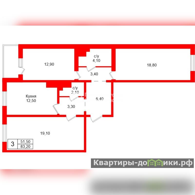 | 12.9 + 18.8 + 19.7 м2 | |