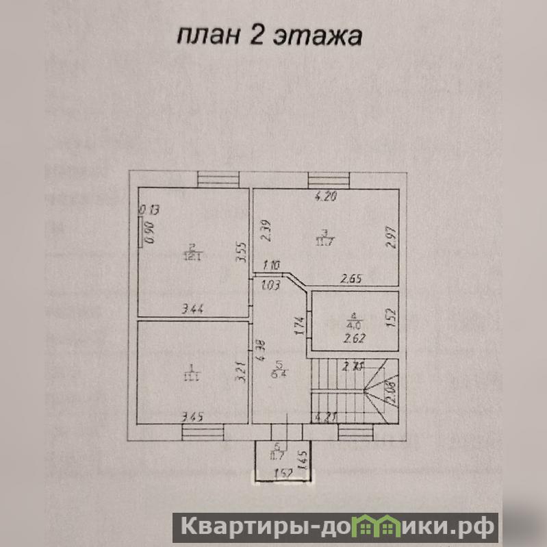 На втором этаже расположены три спальные комнаты 11,1 + 11,7 + 12,1 кв.м, сан.узел 4 кв.м., коридор 6,4 кв.м., из коридора выход на балкон.