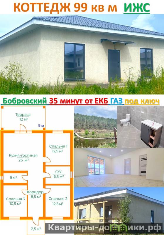 Описание дома • Современный 1-этажный коттедж в пригороде Екатеринбурга • Расположен на ровном земельном участке у соснового леса и реки • Проект Зеленая пристань с жилой площадью 98 кв метров и большой крытой террасой Конструкция и материалы • Несущие стены из ТВИНБЛОКа, межкомнатные стены из ТВИНБЛОКа и железобетонная плита перекрытия пола • В доме 9 помещений: 4 жилые комнаты, гостиная с кухонной зоной, 3 спальни, санузел, котельная с функцией 2-го сан узла, прихожая, коридор, крытая терраса, крыльцо Вентиляция и водоснабжение • Каждое помещение имеет автономную вентиляционную систему !!! • Ванная с сантехникой и разводкой под стиральную машину • Котельная с импортным электрическим котлом, скважиной, автономной станцией водоснабжения, бойлером Отделка и отопление • Отделка под ключ с использованием современных материалов: натяжные потолки, керамогранит, пластиковые окна, стальная сейф-дверь на входе • Во всём доме энергоэфефктивные теплые полы, отопление водяное от электрокотла, в посёлке есть газ Расположение и удобства • Окна расположены на юг, восток и запад, что обеспечивает естественное освещение весь день • В кухне-гостиной панорамное окно с выходом на террасу и во двор • Удачное расположение спален с видом на восход и закат Инфраструктура и документы • В шаговой доступности продуктовый магазин, остановка автобуса, в поселке есть школа, садик, промышленные магазины и даже заправка ГСМ • Дом и земельный участок оформлены в собственность на Застройщика, один собственник, без обременений и долгов • Документы к продаже готовы, оперативный показ, ипотека любого банка, любая программа