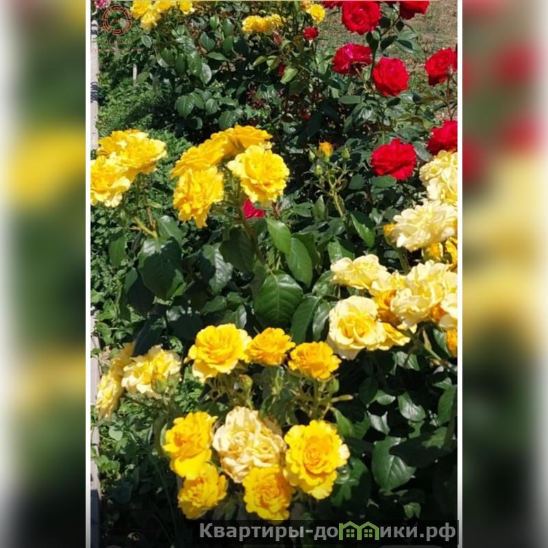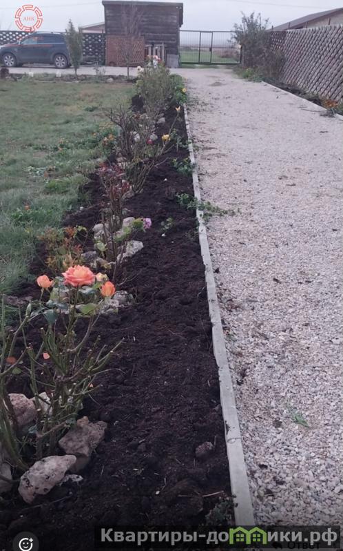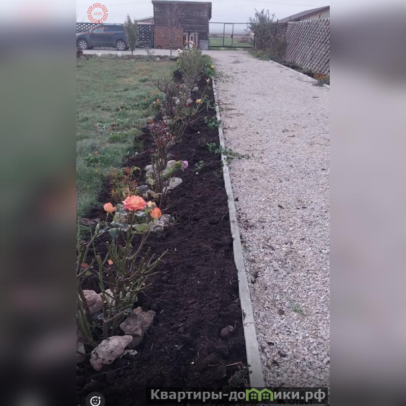 Участок прямоугольной формы, ровный, спланирован, отсыпан и поднят выше уровня участка соседей, плодородной землёй (ранее использовали землю как огород и выращивали овощи), на участке посажены (им7лет) деревья и кусты ( все обильно плодоносят) инжир- 2шт, гранат розовый ранний-4шт, яблоня-1шт, черешня-1шт, вишня- 1шт, слива белая- 1шт, алыча колоновидная- 1шт; кусты красной, и чёрной смородины- 6шт, виноград сладкий-6шт, цветущие декоративные деревья и кустарники- 3шт, Много разных цветов: розы вьющиееся вдоль забора и алея из роз вдоль дороги, так же есть тюльпаны, нарцысы, ирисы, хризантемы и.т.д.