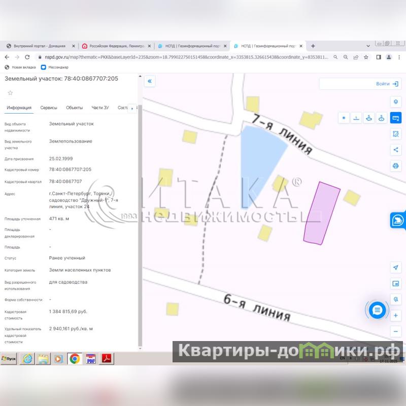 2-17630 В СПб, Торики, в садоводстве Дружный-1, 7-я линия, уч. 24, в 25 мин. до м.Ветеранов, продаётся земельный участок 471 кв.м, кадастровый номер 78:40::205, прямоугольной формы.