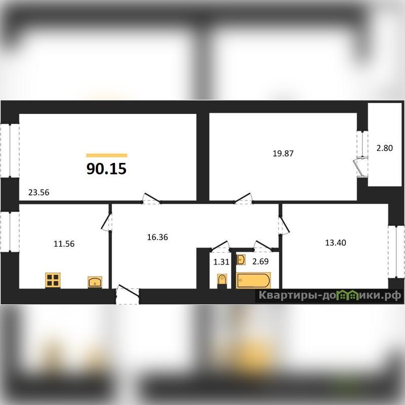 Современное планирование: квартира БЕЗ отделки, останется лишь реализовать свои дизайнерские идеи и создать интерьер по своему вкусу. На фото продемонстрирован один из 2-х вариантов отделки от застройщика.