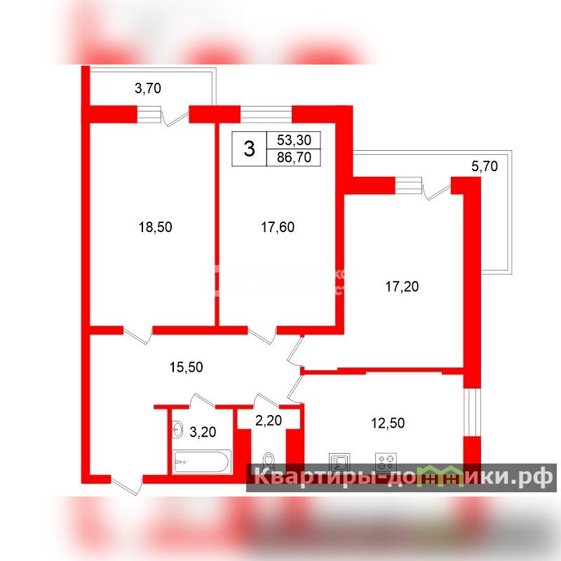 | 18.5 + 17.6 + 17.2 м2 | |