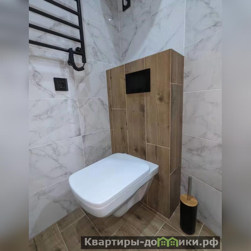 Санитарный узел оснащен современной качественной сантехникой и выглядит опрятно и эстетично.