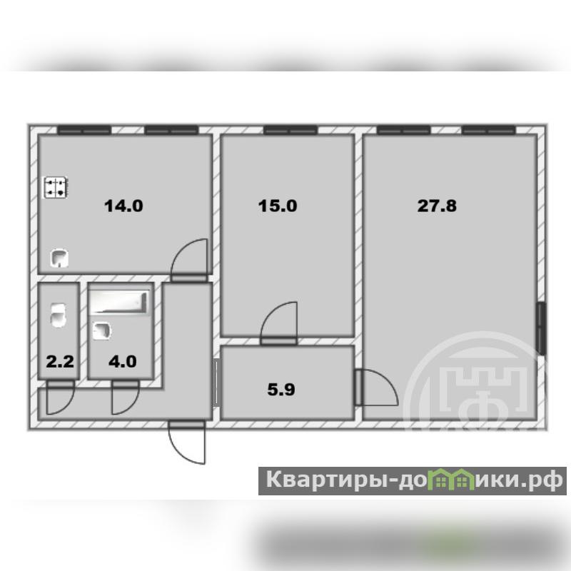 Квартира общей площадью 73,5 кв.м., расположена на 3-ем этаже 5-этажного кирпичного дома.