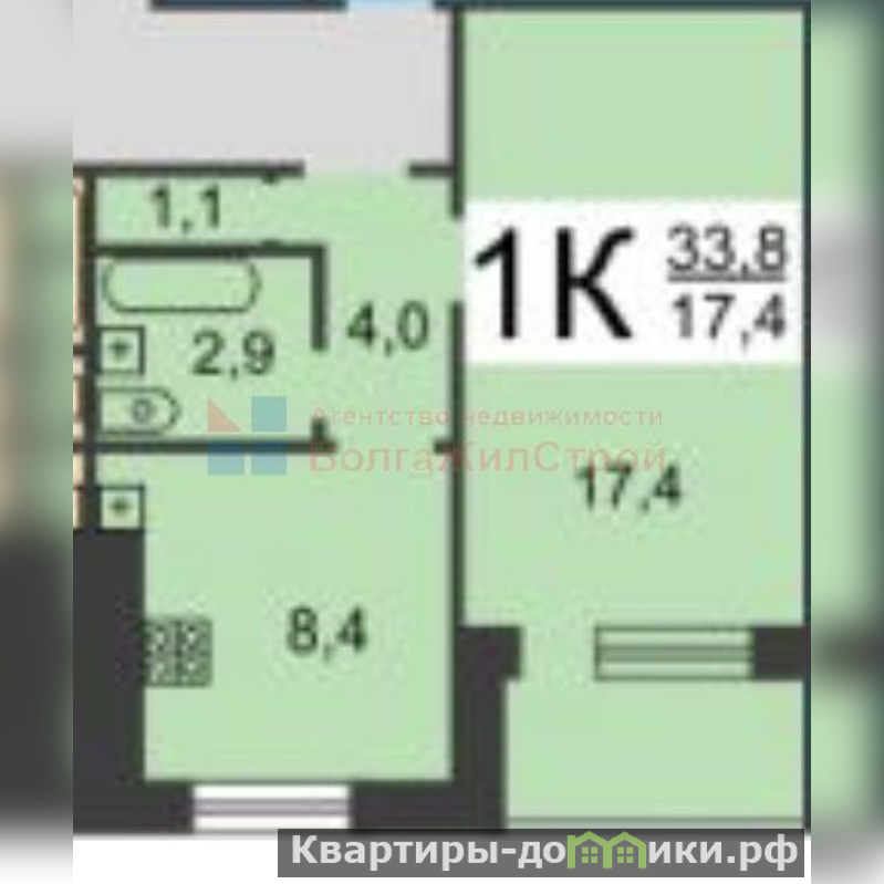 Общая площадь: 33,6 м.