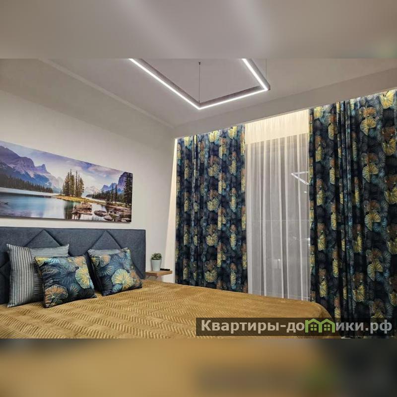 Постель в спальне рассчитана на два человека. Мягкое изголовье защитит голову от случайных ударов о стену. На тумбочках с обеих сторон можно оставить телефон, наушники, пульт и иные аксессуары.