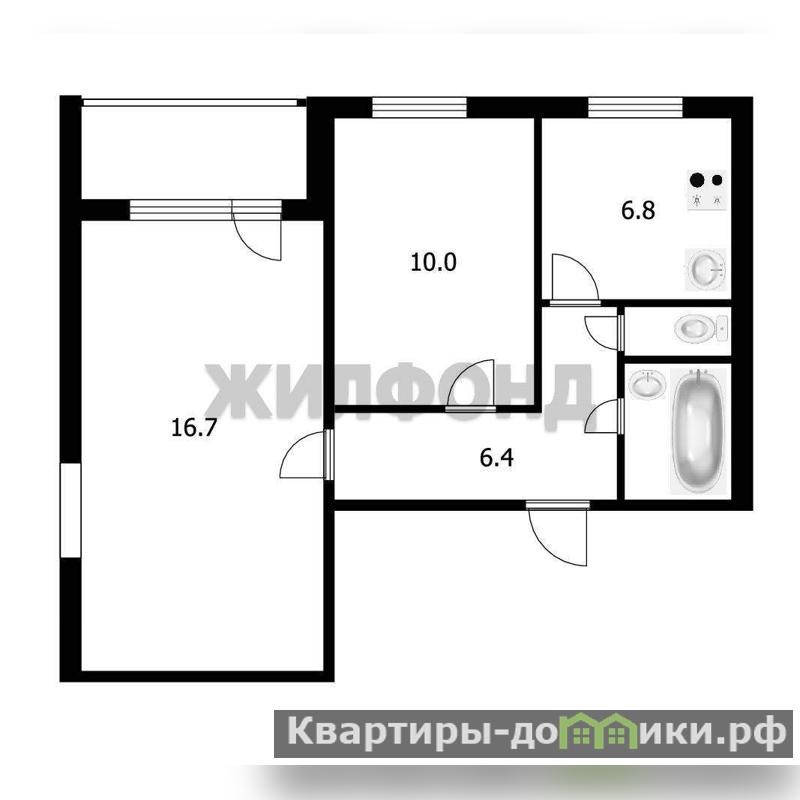 2 комн. квартира по ул. Кропоткина. Общей площадью: 45.70 кв.м.