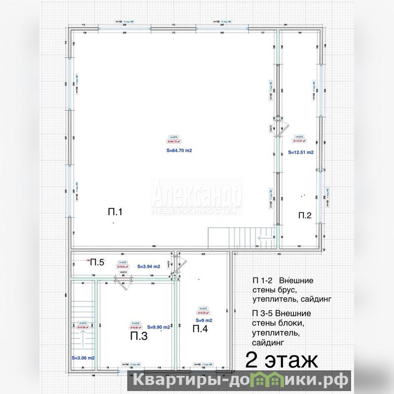 Вторая часть дома 181 м2, 2 этажа, свободная планировка, балкон и мансарда полностью из бруса под чистовую отделку.