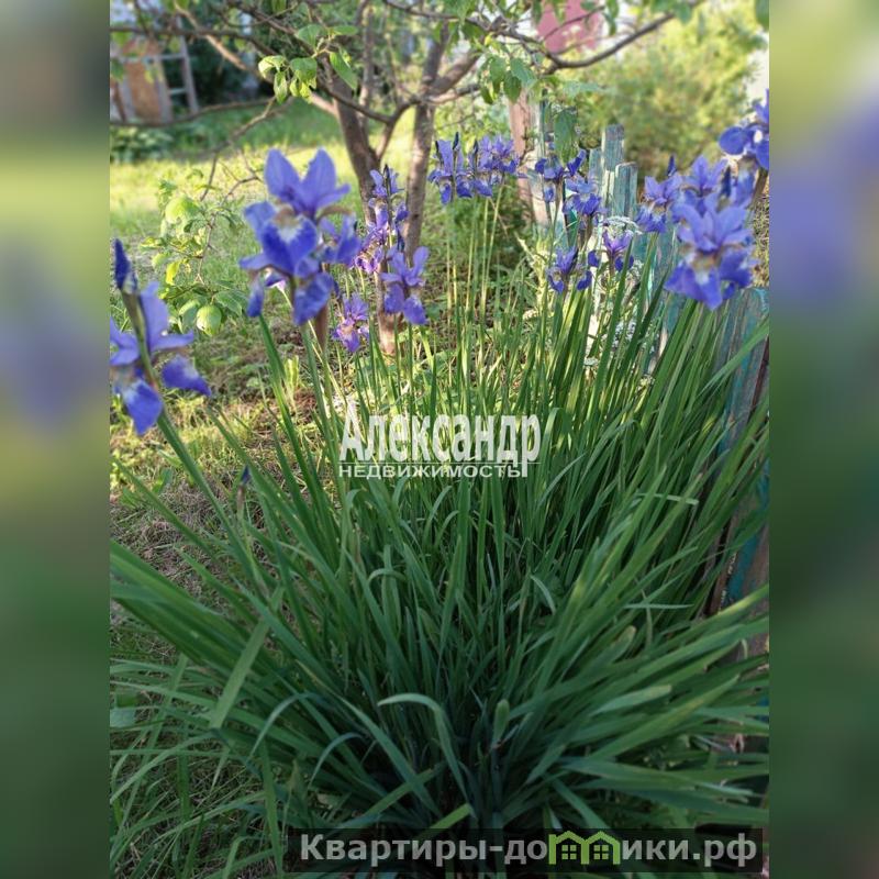 Земельный участок правильной формы, сухой. На участке деревья хвойные; плодовые - вишня, слива, яблоня; ягодные кусты - малина, смородина, крыжовник; кусты сирени, жасмина, дикий виноград; много цветов - хоста, пионы, ирисы, нарциссы и другие.