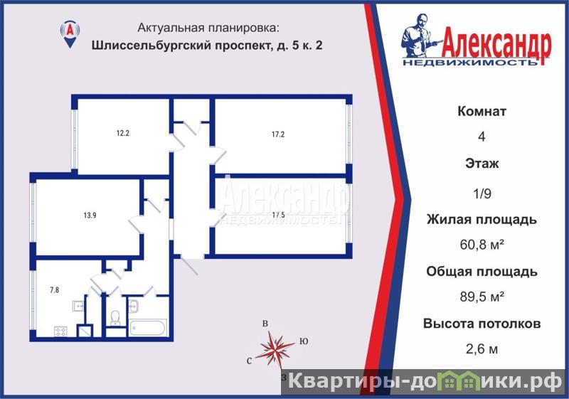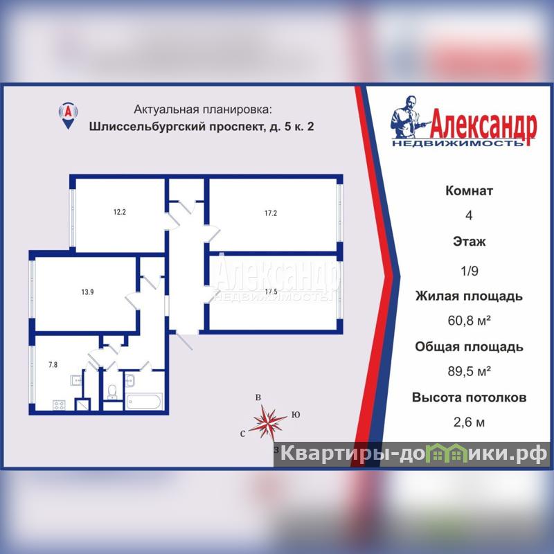 | 13.9 + 12.2 + 17.2 + 17.5 м2 | |