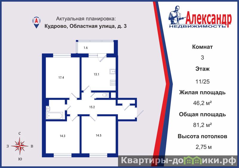 | 14.5 + 14.3 + 17.4 м2 | |