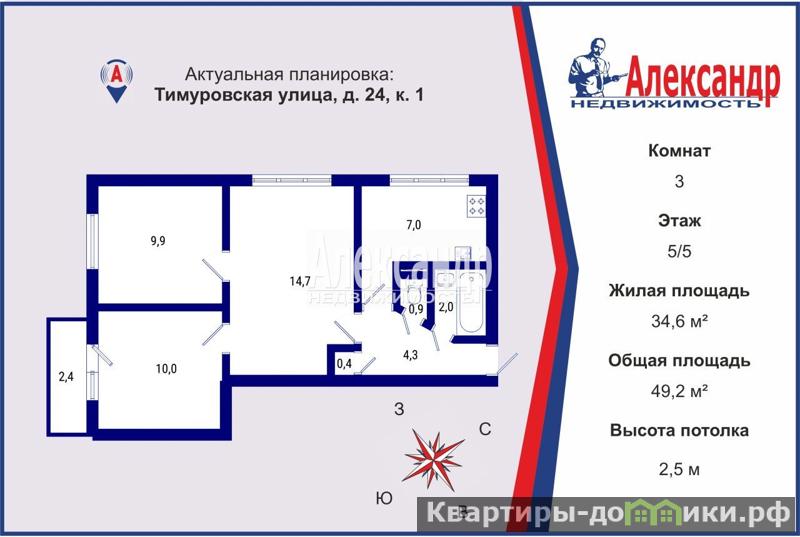| 14.7 + 10 + 9.9 м2 | |