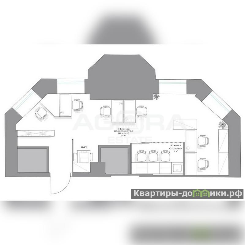 Офис с видом во двор и с высокими потолками.