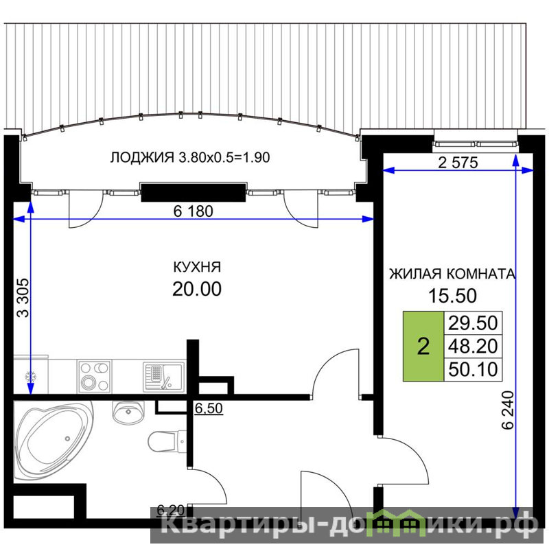 Жилая площадь 29.5 м2, кухня 20 м2, предчистовая отделка.