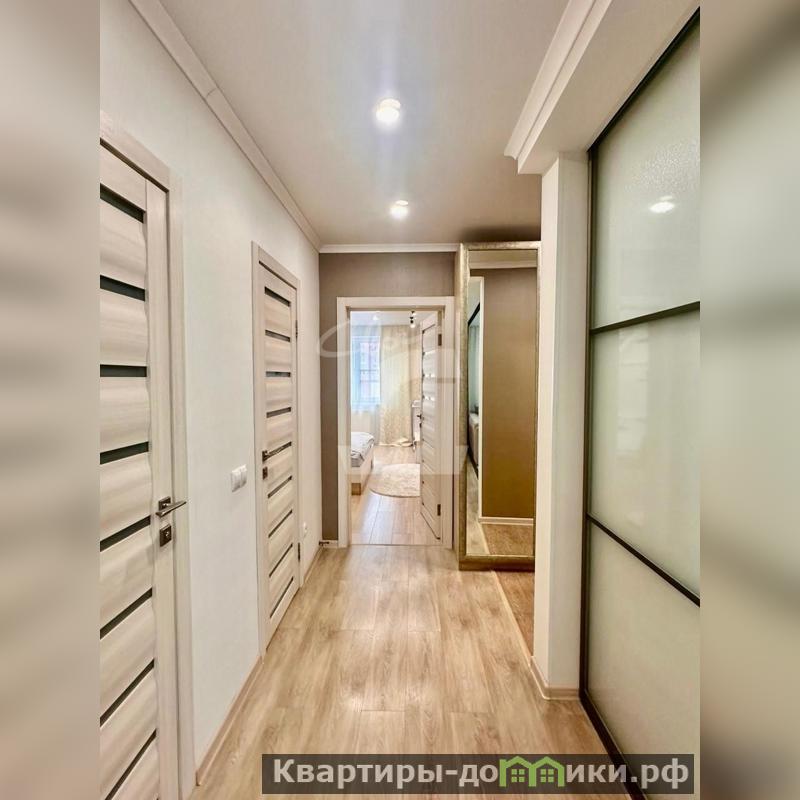 Площадь квартиры 58 кв м. Функциональная планировка "бабочка": стильная кухня и гостиная объединены , имеют прозрачную перегородку с дверью-купе, ,уютная спальня 15 кв м санузел раздельный , просторная прихожая .