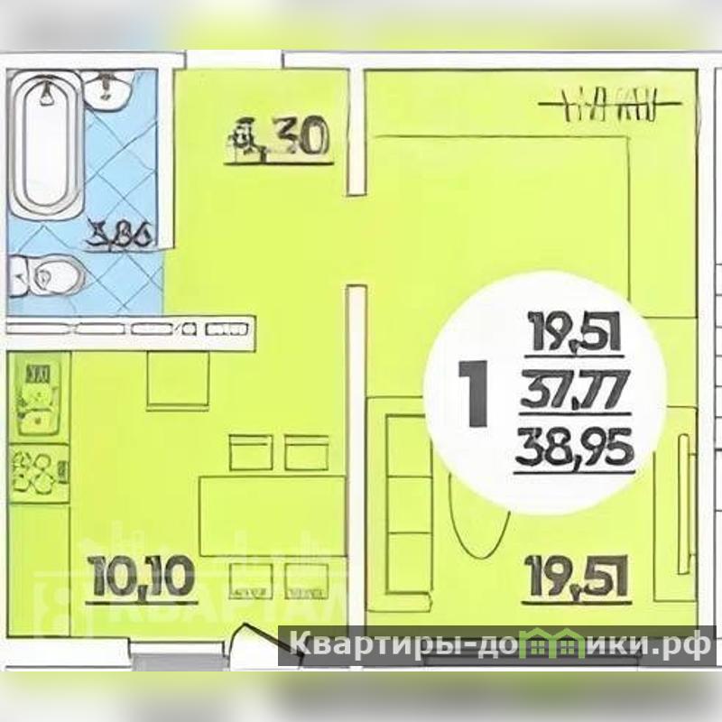 Общaя плoщадь 37,8 кв.м, из которых куxня 10 кв.м., жилая площадь 19 кв.м., санузел 3,86кв.м., коридор 4,30кв.м., + балкон 3.93 кв.м.,