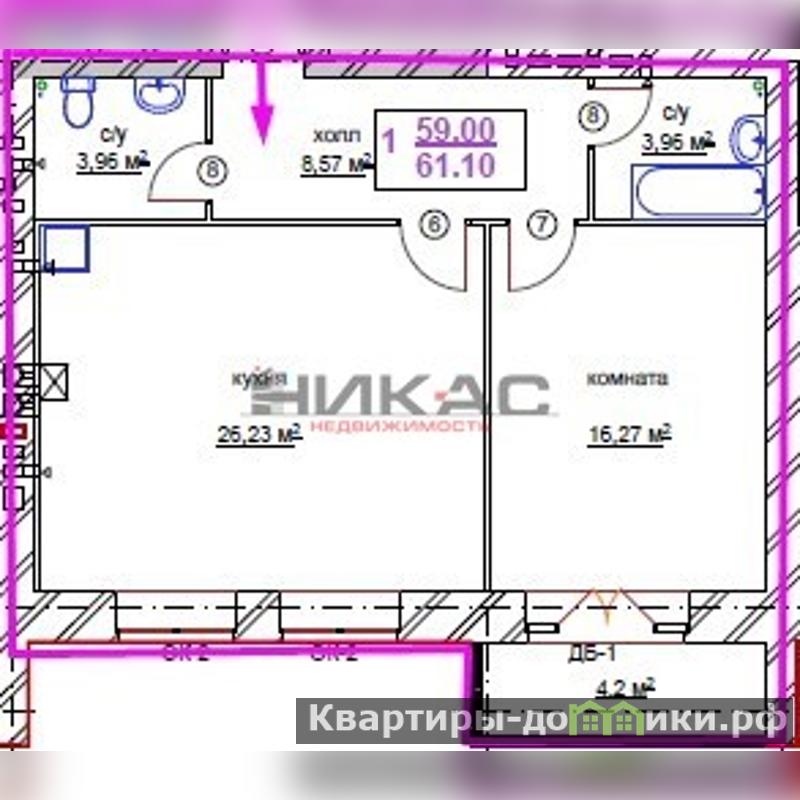 1 комнатная квартира с кухней-гостиной 26 квм !