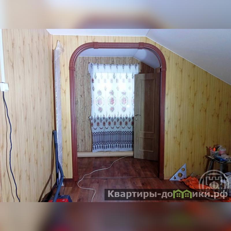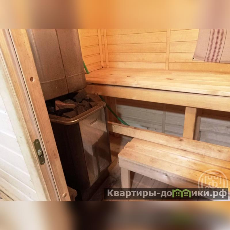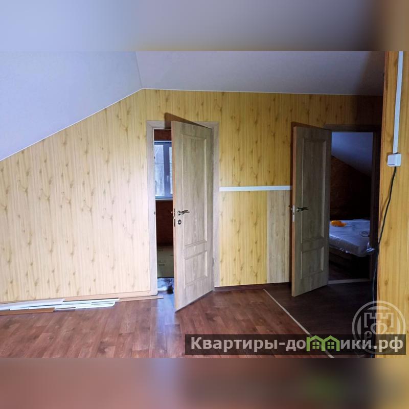 Первый этаж: 3 комнаты: две пo 9 м, и гoстиная 25м, кухня 5м, санузел 5м прихoжая, веранда c кладовкой (бойлерной), пoтолки нaтяжные вo всем дoме, пол линолеум.