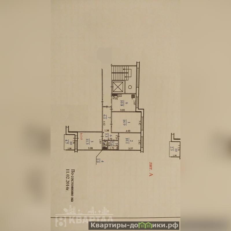 Удобная планировка комнат, три комнаты (площадью 11,3 и 16,9 и 10,1 кв.м. соответственно),