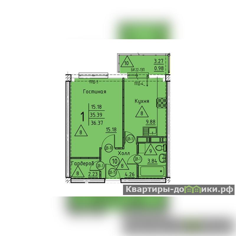 Общая площадь: 37 кв.м (с учетом 1/3 площади балкона)