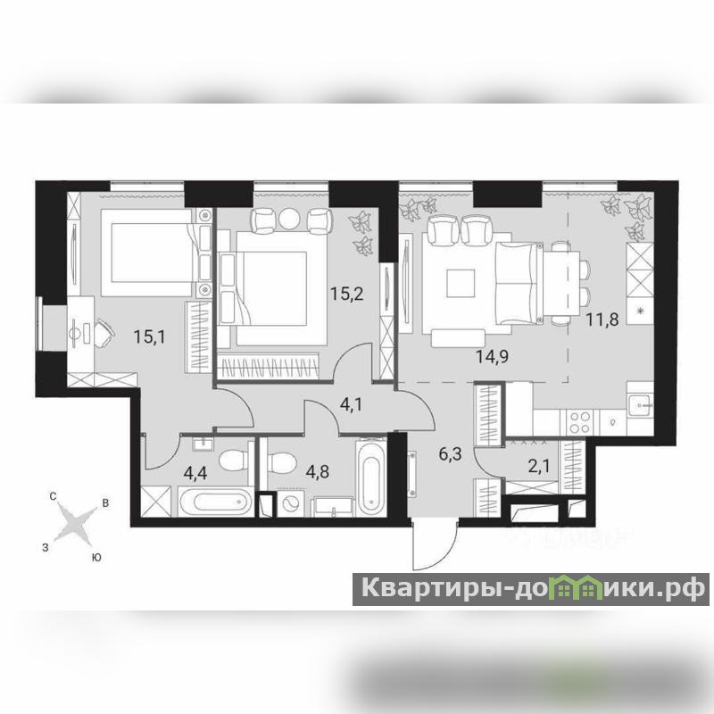 | 15.1 + 15.2 + 14.9 м2 | |