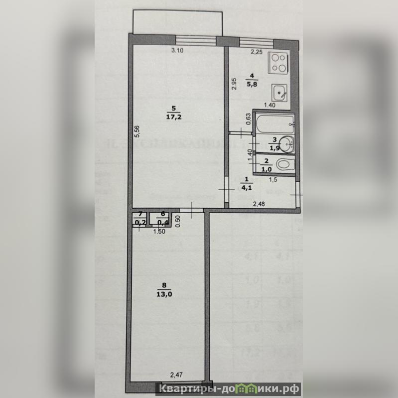 Квартира на 5 этаже пятиэтажного дома, общей площадью 43 кв. м.