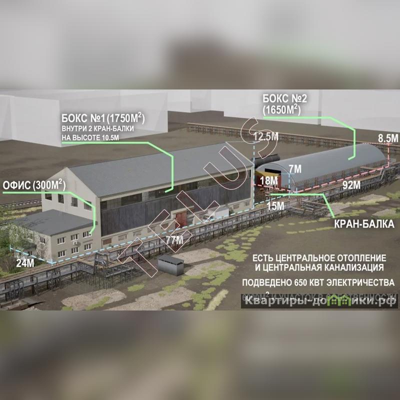 Производственно-складской комплекс 3462 масположен на земельном участке 0,5 га в собственности. Электрическая мощность 650 кВт. Центральное отопление, центральная канализация. Возможно подключение газа. Здание 1 - 2098,5 м2 из которых 1704,5 м2 - производственная часть и 394 м2 АБК. Стены - кирпич, пол - бетон, высота потолка в коньке 12,5 метров. В здании установлены 2 кран-балки грузоподъемностью 5 и 3 тонны. Здание 2 - склад ангарного типа 1363,5 м2 с высотой потолка до 8,5 метров. Между зданиями установлен козловой кран грузоподъемностью 10 тонн. Здание 2 (склад) сдан в аренду. МАП - .руб., индексация 8% в год. Здание 1 - в процессе согласования договора с арендатором, МАП - .руб. Территория охраняется. ВРИ участка: для промышленных целей. Объект расположен в 21 км от МКАД по Симферопольскому шоссе. Объект №. AFY-901102943