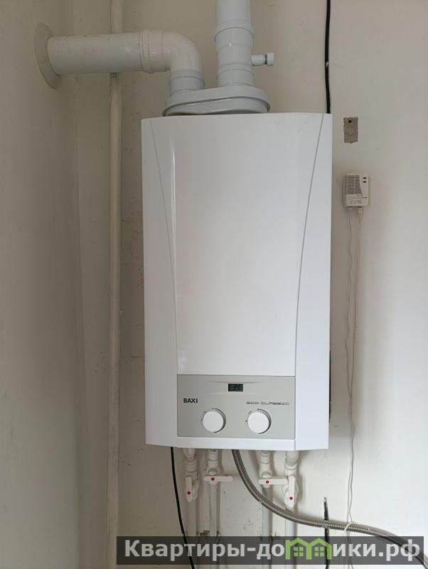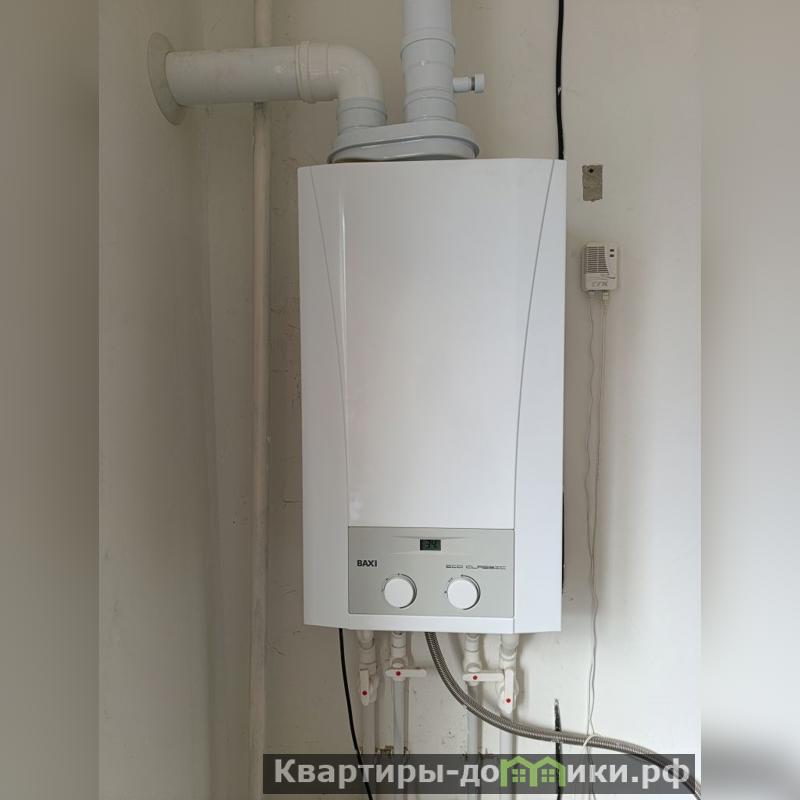 Квартира с чистовой отделкой, на полу залита бетонная стяжка, установлены окна ПВХ, двухконтурный котел BAXI.
