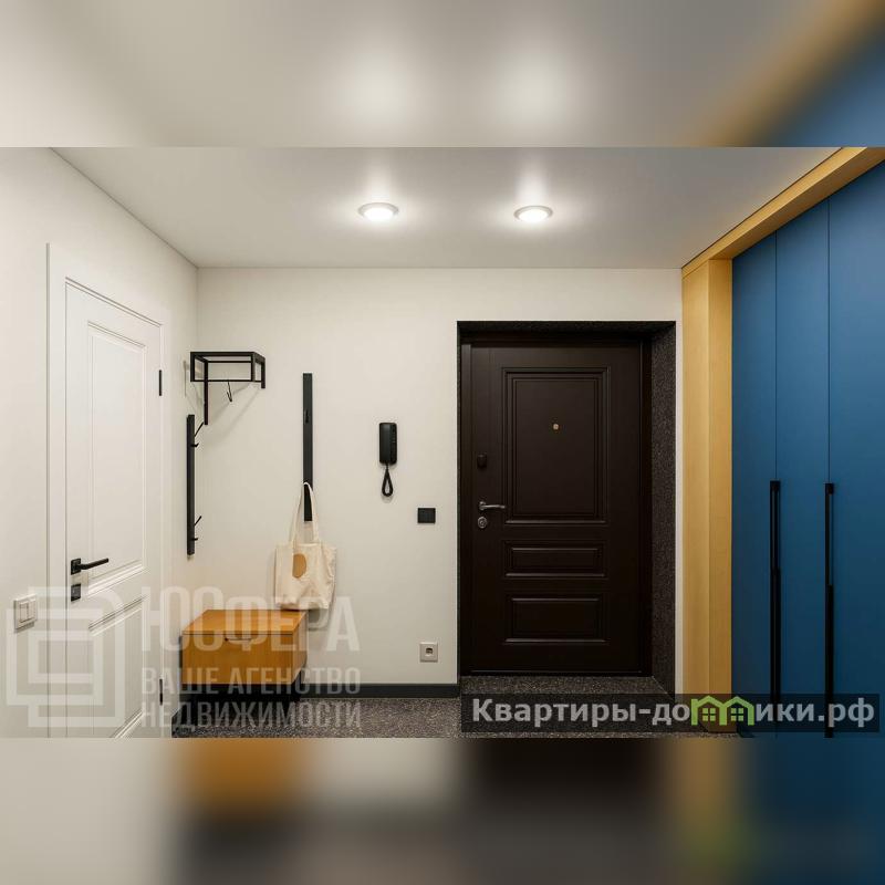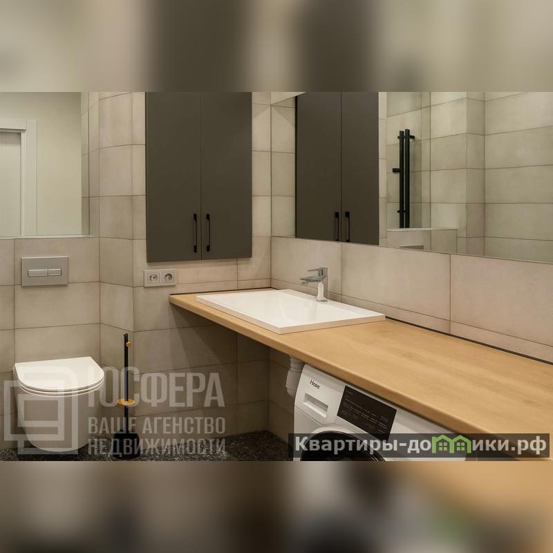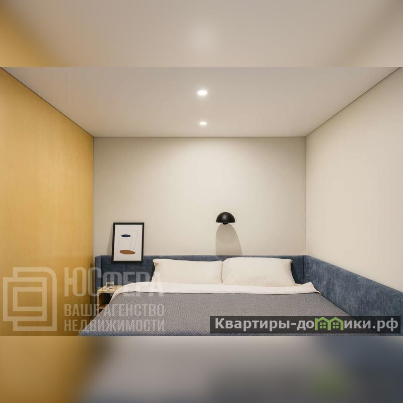 Этаж 14 из 16, высота потолков 2,6 м. Общая площадь — 40 кв.м, жилая — 16 кв.м, кухня-студия — 10 кв.м. Пространство продумано до мелочей, выполнено в современном дизайне.