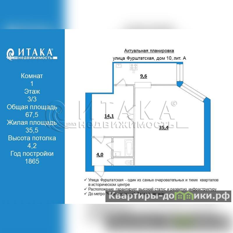 1-92566 Готовы стать владельцем не просто квадратных метров, а частицы настоящего Петербурга?Тогда эта большая однокомнатная квартира с высокими потолками - для вас!