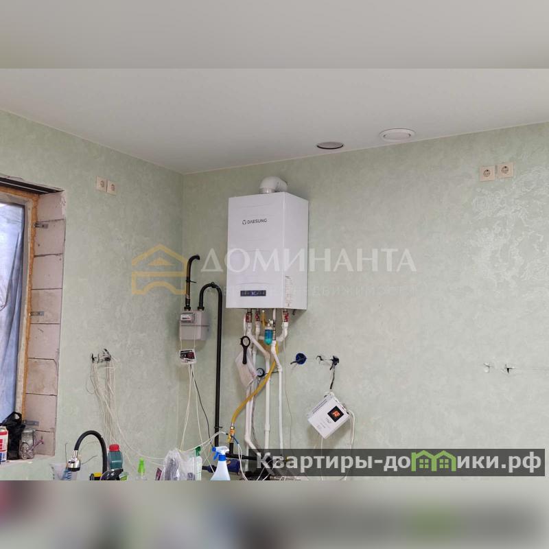 Дом с газовой системой отопления. Стены изготовлены из газоблока толщиной 300 мм марки D500 и снаружи облицованы кирпичом. Кровельное покрытие выполнено из металлочерепицы. Планировка предусматривает две комнаты, совмещенную кухню-гостиную и террасу. Все необходимые документы на дом оформлены и готовы к предъявлению.