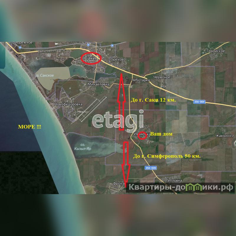 Удобное место для проживания и отдыха: до моря 4 км, до озера 2 км, до райцентра 8 км. Аэропорт и город Симферополь в 40 км от посёлка, Евпатория — в 30 км. Автобусная остановка — 200 м от дома.
