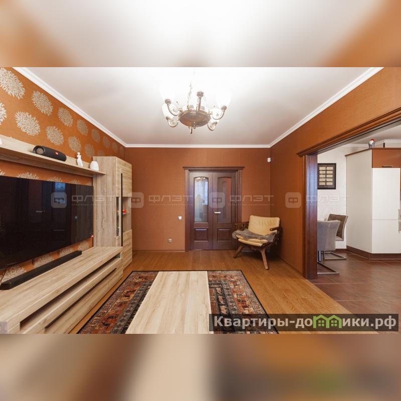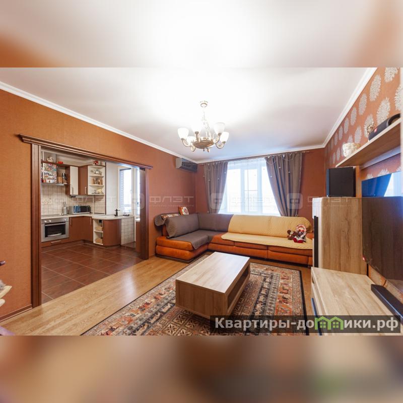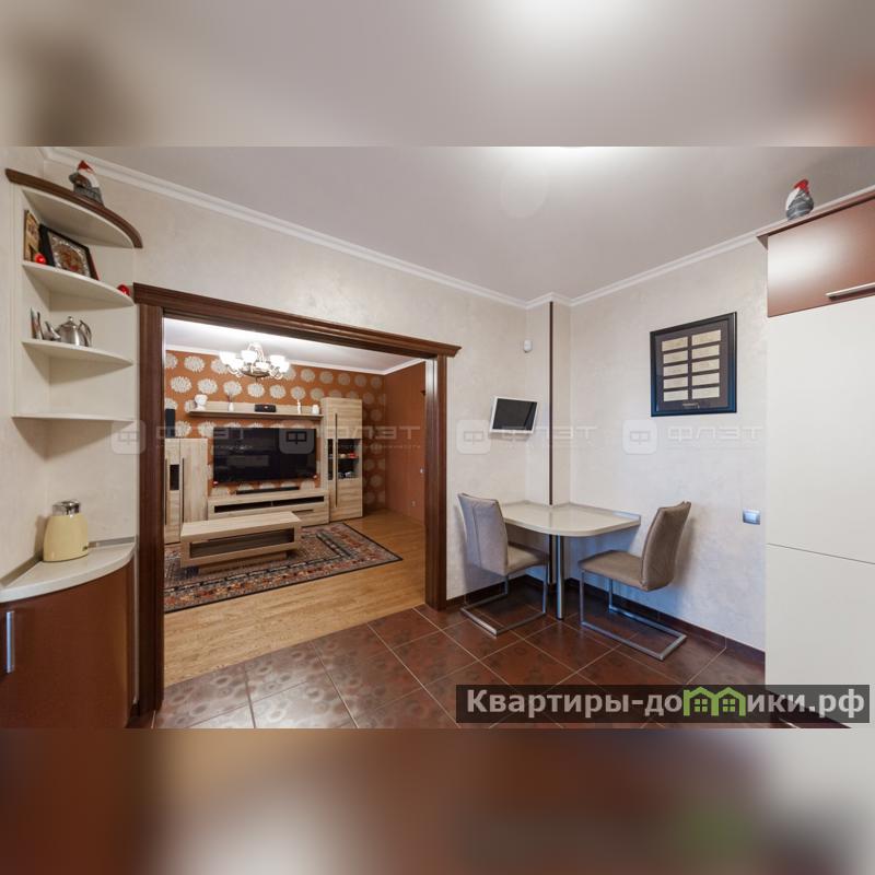 Просторный зал соединён с кухней. При входе в квартиру имеется гардеробная.