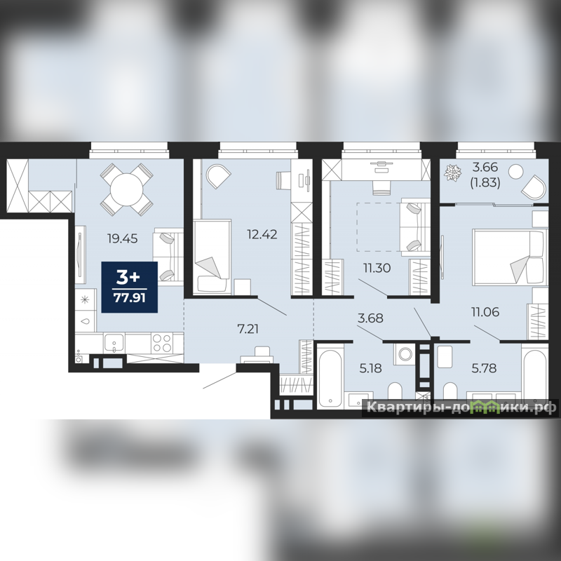 | 12.4 + 11.3 + 11.1 м2 | |