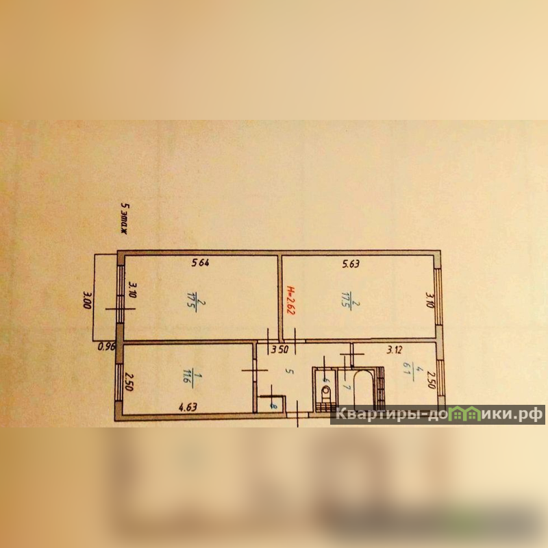 Квартира , Светлая, просторная , раздельный санузел. " комнаты по 17,5 метров, 3 комната 11,5 кв.м.
