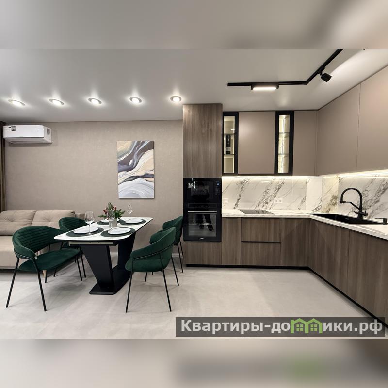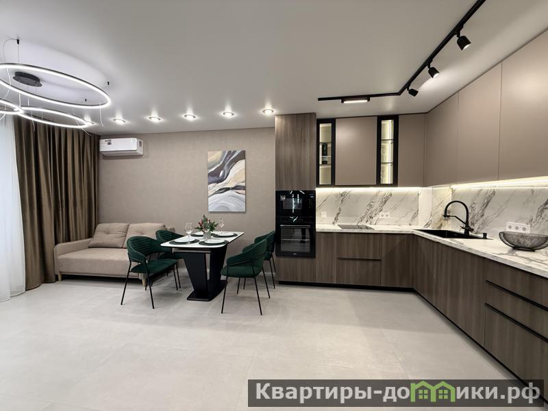 • Площадь кухни?гостиной 22,4 м² — просторная, продуманная зона для семьи и приёма гостей; встроенный кухонный гарнитур с техникой: духовой шкаф, варочная панель, посудомоечная машина, большой холодильник.<br />